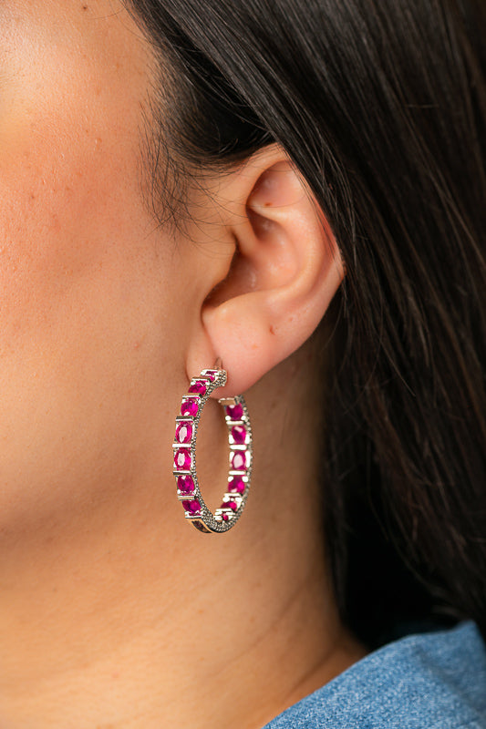 Discover your inner fashionista with our Vibrant Colored Hoops. Made with high quality polished Brass metal and Synthetic Color Stones.
