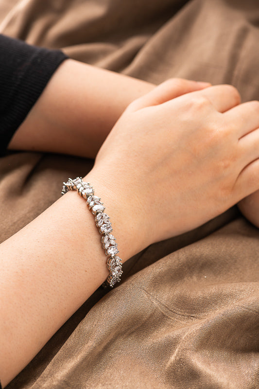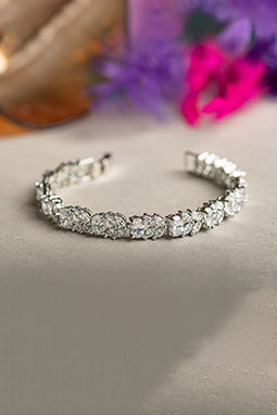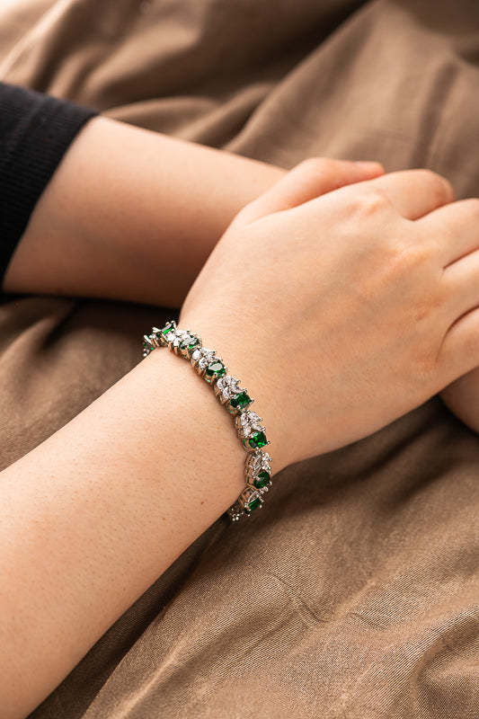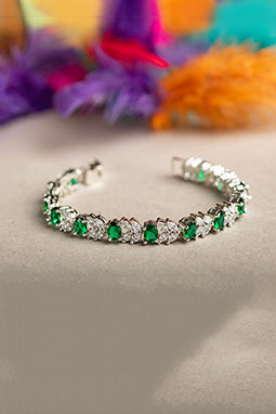 Express your unique style with our Leaf Beauty Bracelet. Made with high quality polished Brass metal, Cubic Zirconia (white stones) and Synthetic Color Stones.