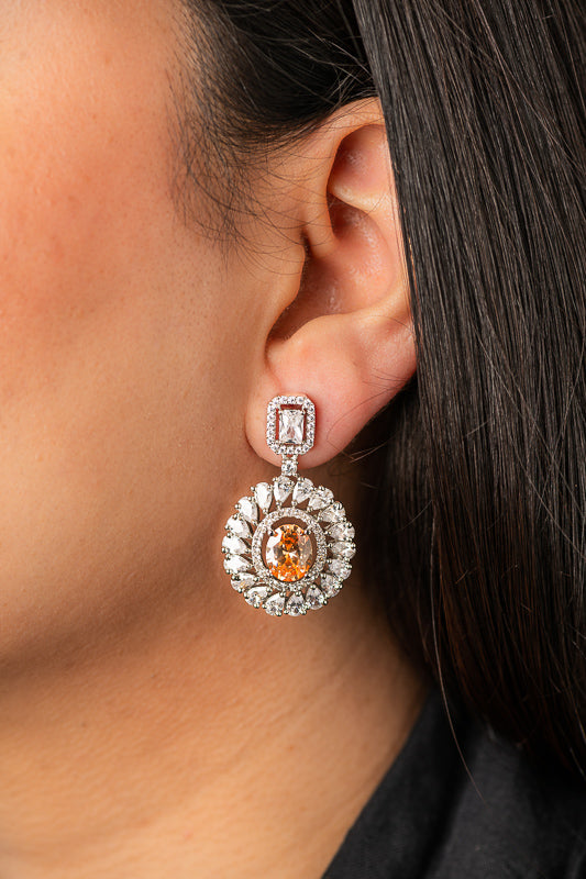 Dress to impress with our Dazzling Colored Stone Earring. Made with high quality polished Brass metal, Cubic Zirconia (white stones) and Synthetic Color Stones.