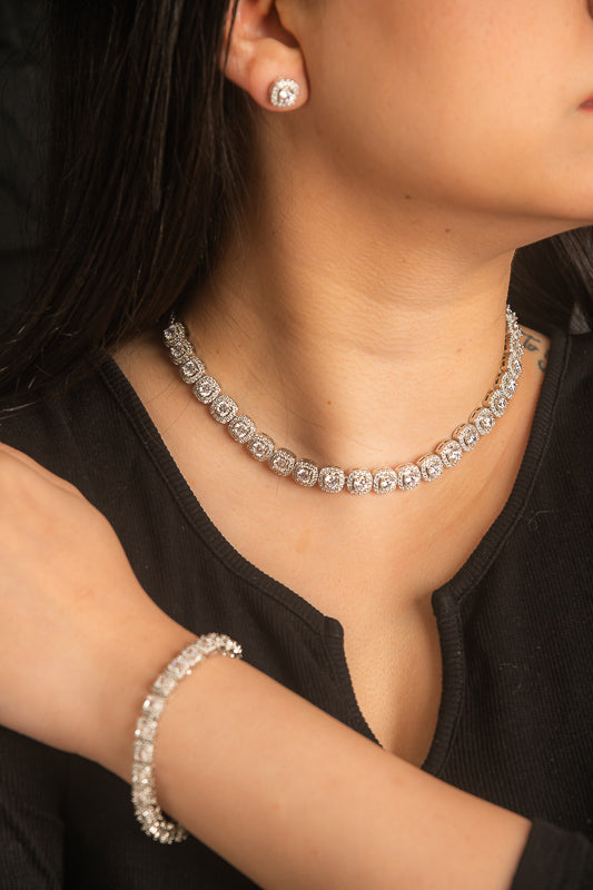 Look and feel fabulous with our Starry Night Necklace Set. Made with high quality polished Brass metal and Cubic Zirconia stones. Necklace Sets include a necklace and a pair of earrings. Matching bracelets are sold seperately.